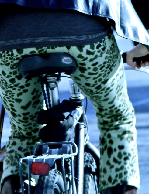 Rawr Posted on April 18, 2011 by Mary Lucas 0 Now those are some serious pants. I know the color’s a bit off-I hadn’t quite figured out the camera just yet. but yes, those pants were green. With an animal print. On a bike. So fab.