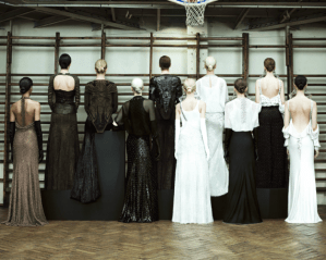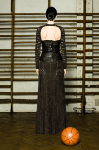 Oh, don’t we just all love Givenchy? Riccardo Tisci can do no wrong, really, especially in his couture, which always has some of the most exquisite pieces from all the couture shows. This season, he went a bit darker, much darker, in fact. But the non-whiteness of the clothes didn’t make them any less beautiful. I fact, it was sort of refreshing to see him do something so dark for Couture. His inspiration came from two 1920’s films, making it clear where the art-deconess of it all came from. Though neither films were related to bugs, his models, with their giant nose adornments, almost looked like them. Maybe he and Giorgio conferenced on colors inspirations. A bit should be said about the crocodile (seriously, everyone is lovin this shit right now) which was, for a long and clingy dress, cut into the individual scales, numbered, belched, dyed, and resewn one by one onto a tulle body stocking. While Karl was busy erecting his plane with his free 350 hours, Tisci was busy making one of the most beautiful dresses he’s ever made (until next season, at least). I’ll be honest and say I don’t understand the basketballs, but maybe that came from one of his movies. Let’s all run and watch them now, then maybe we can understand too.