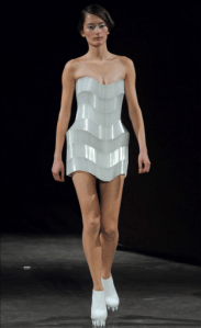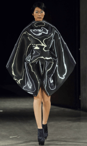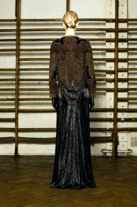 Sculptured pieces rocked the runway at Iris van Herpen, a dutch designer known for creating costumes for Lady Gaga and interning at Alexander McQueen, and it shows. Her techy dresses are made on photoshop, then with the help of an arhictect, and probably there is some other magic in their as well. The result is dresses that indeed look like pieces of architecture rather than dress, which are definitely cool, and, unless you are Gaga, definitely unwearable. But those shoes would be great ice picks for those who want to stay fashionable and still be able to walk in the snow.