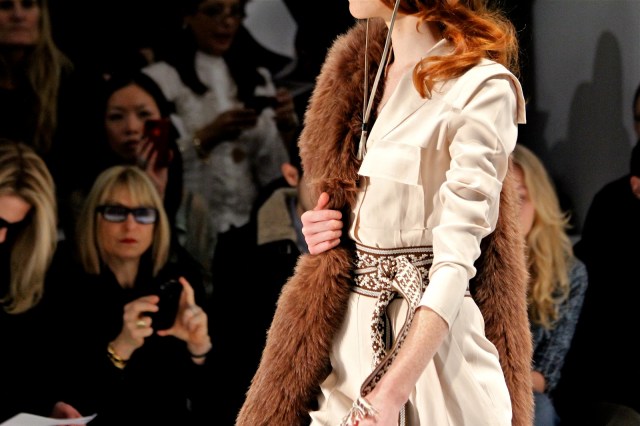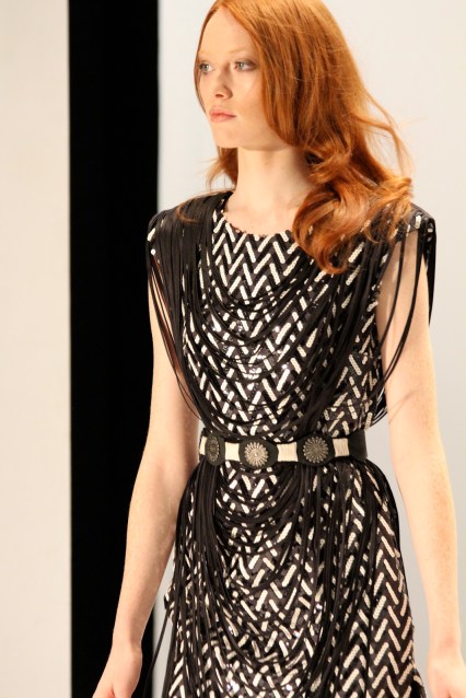 With Sean and Anthony Souza, the brazilian brother dj duo who are quickly gaining notoriety thanks to Madonna and NYFW, spinning for him on the runway, Carlos Miele, known mostly for his dresses, showed his latest collection, inspired by the gauchas, or the women, of Rio Grande do Sul. Seems appropriate, for him being a brazilian designer and all. Miele wanted to capture “the sensation of freedom one imagines the gaucha feels when she is riding horses or walking through the fields of the boundless Brazilian pampas…” (the pampas, it should be noted, are fields. But pampas sounds more exotic, doesn’t it?)