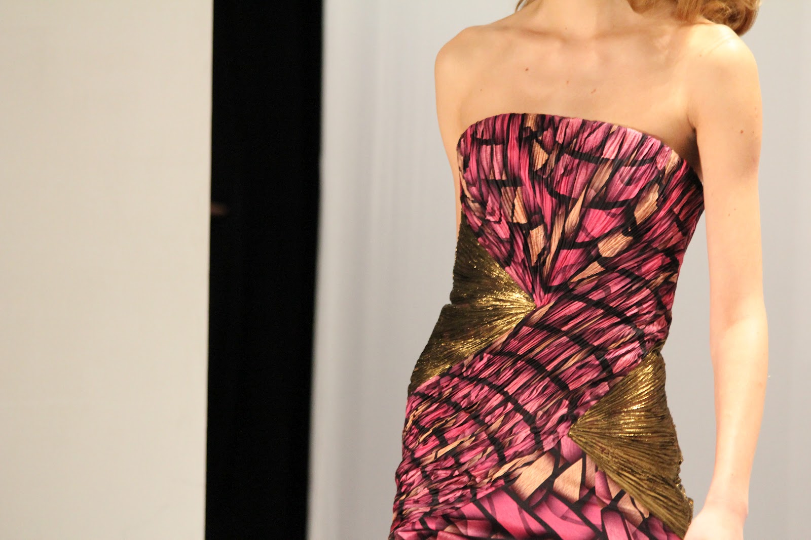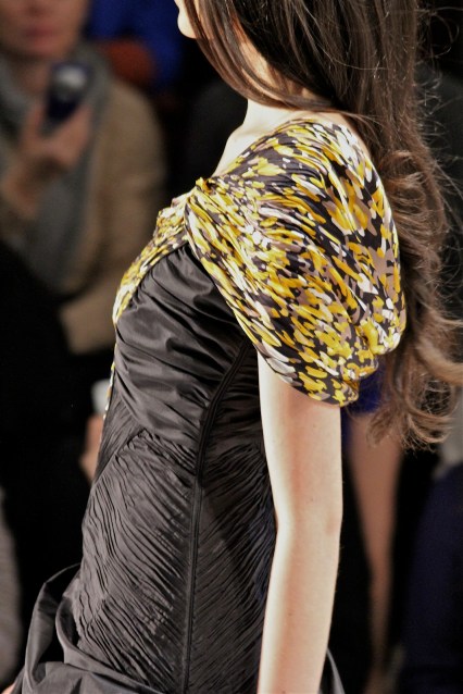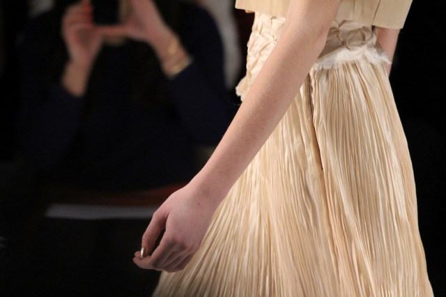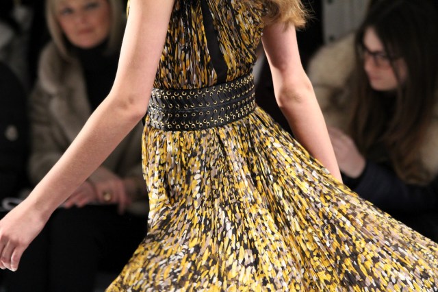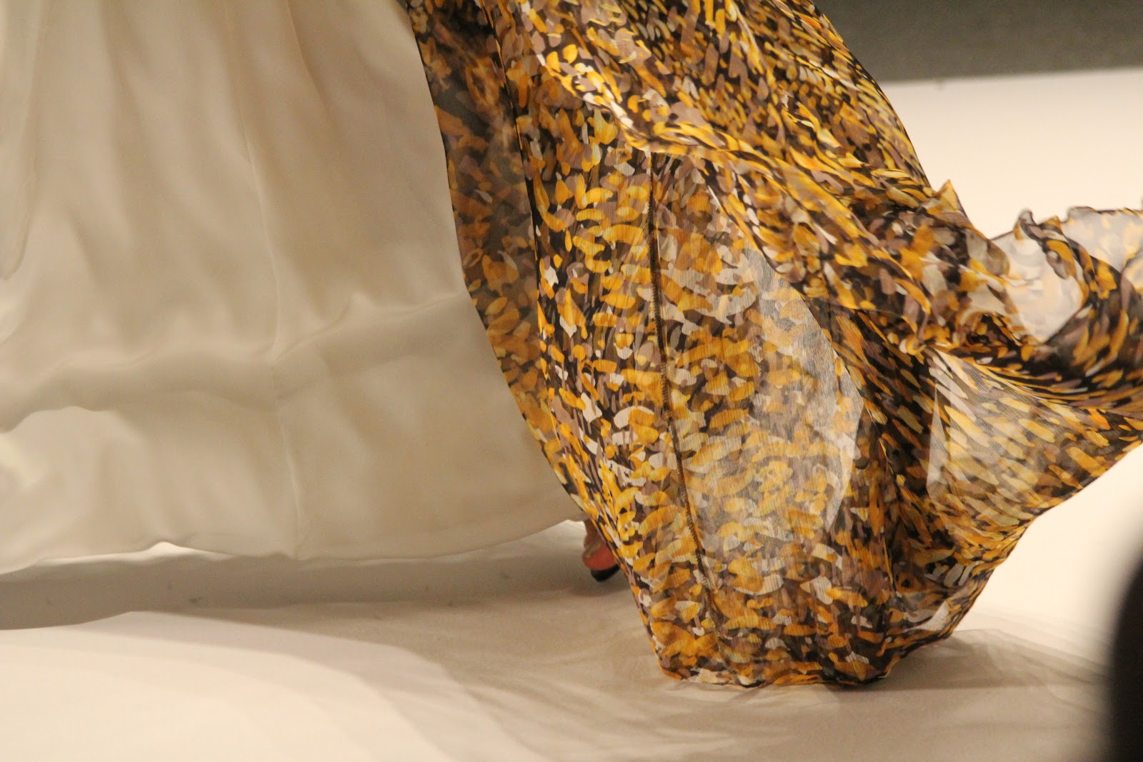 Don’t worry though, there were so many other good things besides fur. Besides a few weird things like a dress made of pieces of fabric that got progressively wider the farther down they got (a cool idea- like fabric size ombre, but the result was more just, strange looking) Miele’s collection was a hit, particularly in the tiny pleats of fabric or the scrunched-up-pleated-up chiffon, the bolero jackets, and the more-is-more-but-not-top thing he has going on. The gowns flowed beautifully thanks to their light fabric, and they were accessorized with authentic gaucha hats and sashes. (Putting daytime accessories with evening wear is one of my favorite things, by the way). The geometric prints were inspired by, what else, traditional gaucha sashes and ponchos, and the color palette by the landscape. Miele was truly at home this season. Spin on.