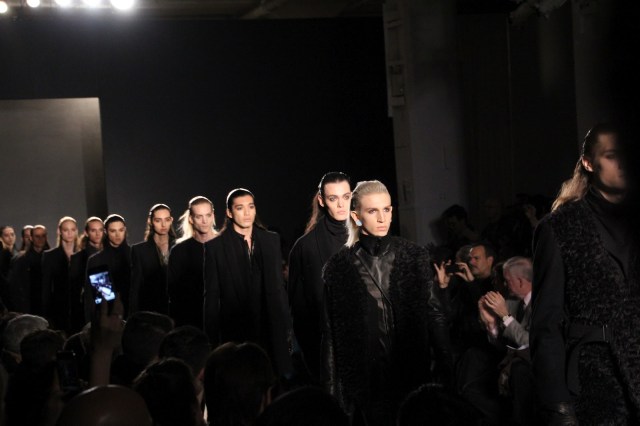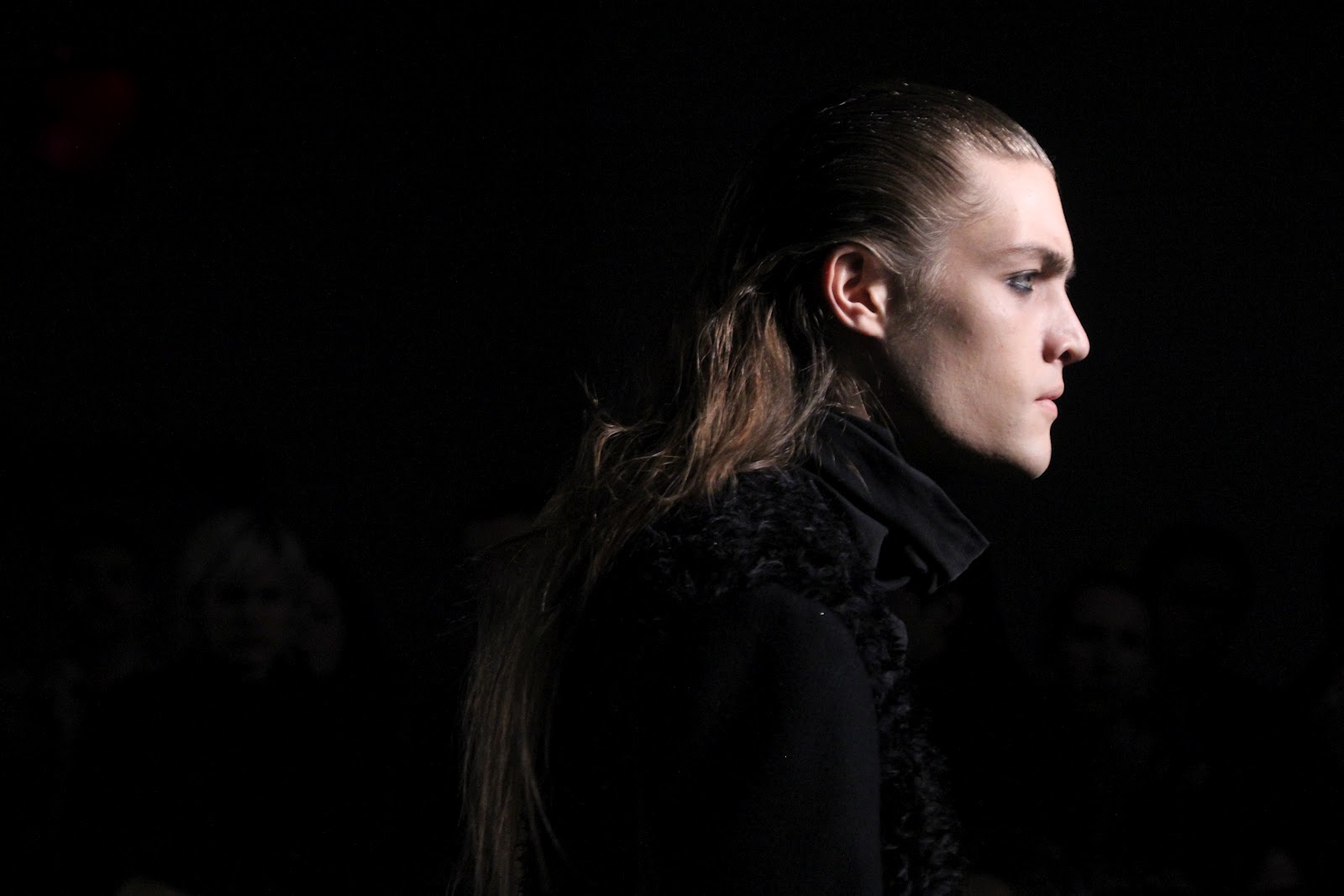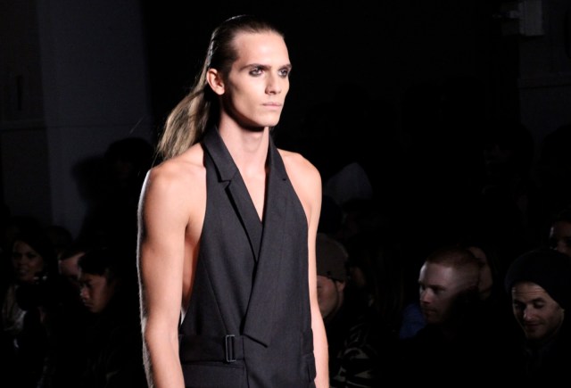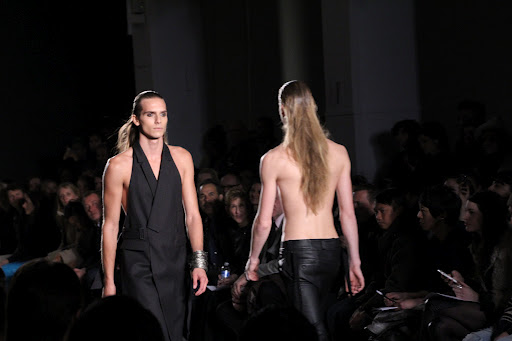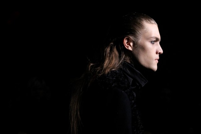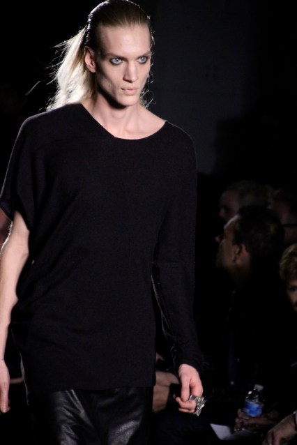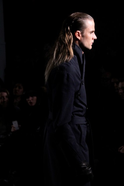 This menswear is a little darker, a little more rocker-punk-goth-chic, and, though not for a weekend in the hamptons, helps to fill the void left in menswear by all the pastel button downs and khaki pants. Somewhere, Rick Owens is rejoicing in having a partner in darker menswear, yet simultaneously crying because he now has a little more competition. He’s also miffed that all the models had his hair…