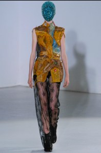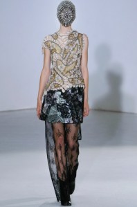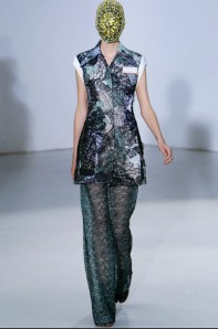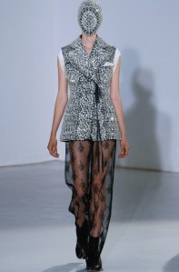 Margiela clearly had a lace-and-gem thing going on in this couture, but with that came things like a plastic coat or a jacket of baseball gloves, which don’t seem to match at all, but seem so effing cool you can’t help but want it all. Margiela is the essence of cool, but not in a downtown way. No, his cool is more refined, more sophisticated, and damn great. This was couture in the grittiest sense, and in the most refined-grittiest way possible.