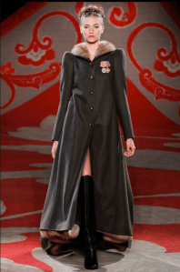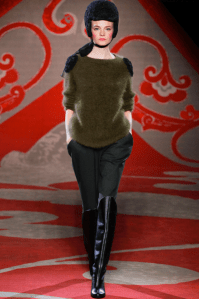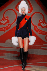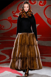 Ulyana Sergeenko, the Russian street style star turned designer’s show was very Russian indeed. It seemed to mix sexy Russian with grandma-babushka-Russian. There were prarie-esq dresses, fur-skirts, heavy coats, rosettes, and head scarves. But there were also rompers, chic mohair sweaters, smart trousers, and knee high boots. The skirts were voluminous, the shoulders exaggerated, the Ulyana-Sergeenko influence clearly present. The sweater-tucked-into-huge-50’s-skirt look has become her signature, so for anyone who wants to look like her, here you go.